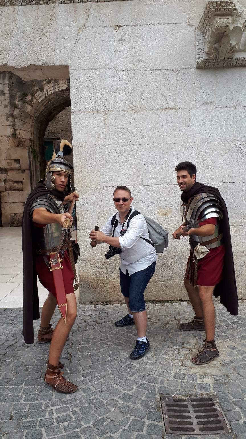 Je garde mon appareil autour de mon cou, pour bien montrer le touriste guerrier au milieu des romains. :-)