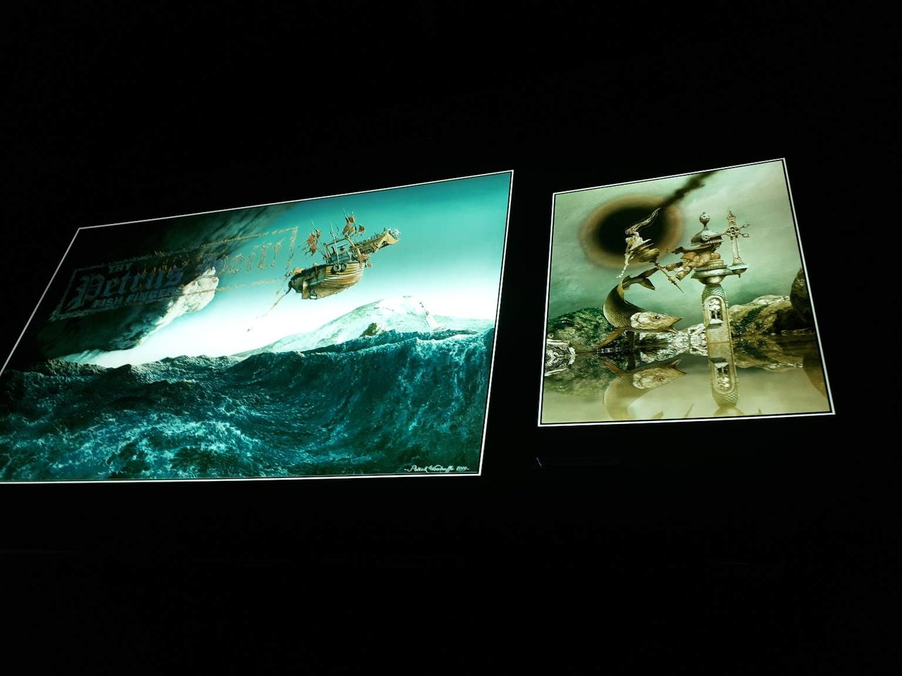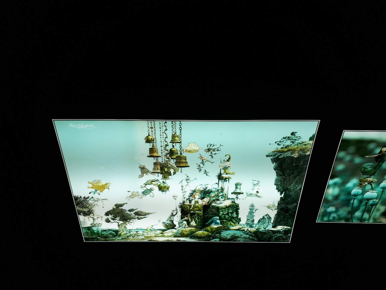 Vous verrez une exposition de tableaux de peintures, mi en avant aux reflets de lumières sur un fond noir. Une exposition unique en son genre.
